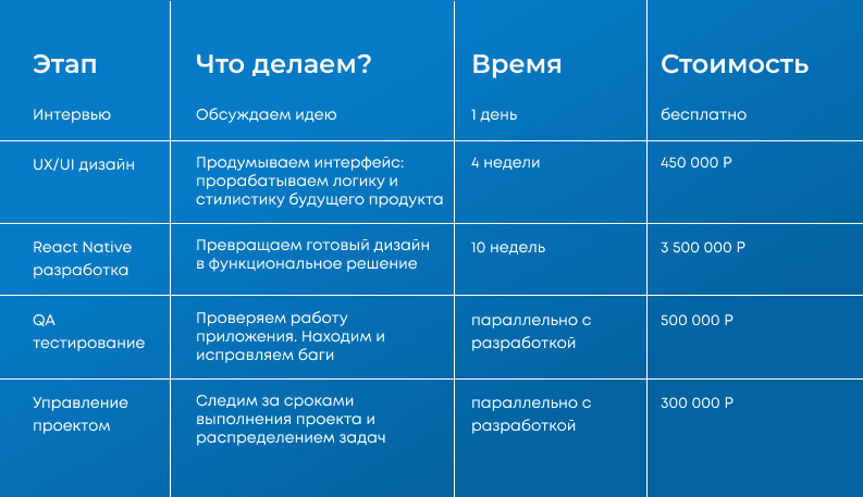 - Формируйте команду с разносторонними экспертами - разработчиками, дизайнерами, QA инженерами и копирайтерами. Команда обеспечит всестороннюю помощь проекту и предоставит практические советы для разработки удобного и понятного для пользователей сервиса.